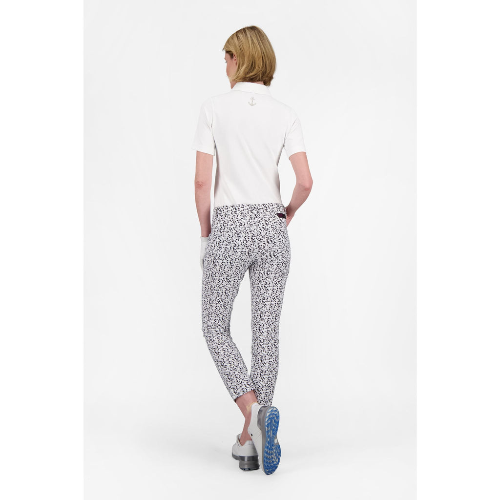 Damit du dich auch auf dem Golfplatz rundum wohl fühlst, verfügt die Hose über einen Innenbund mit Silikonband. Dies verhindert ein Verrutschen deines Poloshirts und sorgt für einen perfekten Sitz. Das Logo der Hose ist zudem mit funkelnden Strasssteinen verziert und setzt somit ein weiteres Highlight.